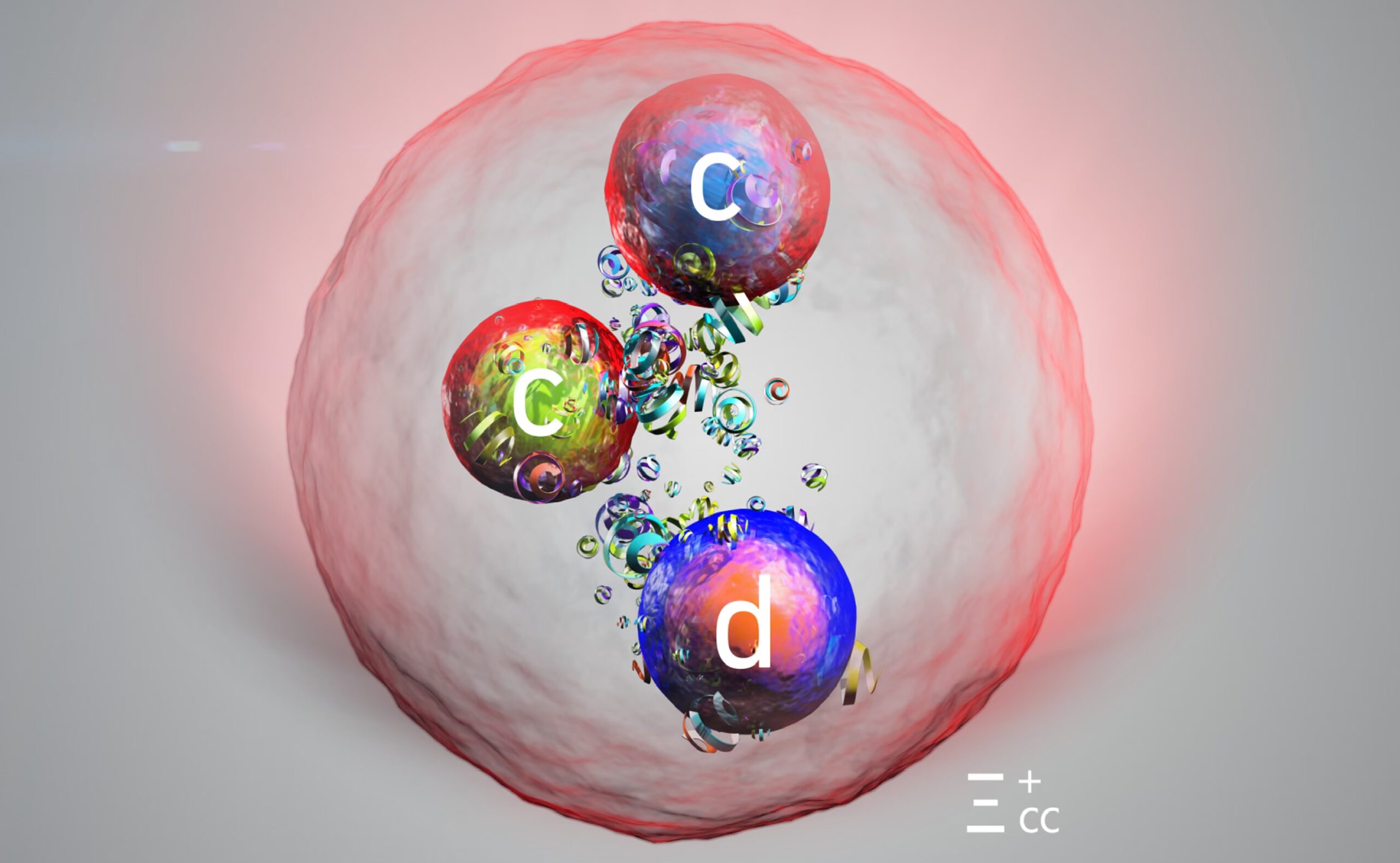 Caption: Artist’s impression of the new particle, which contains two charm quarks and one down quark. (Image: CERN)