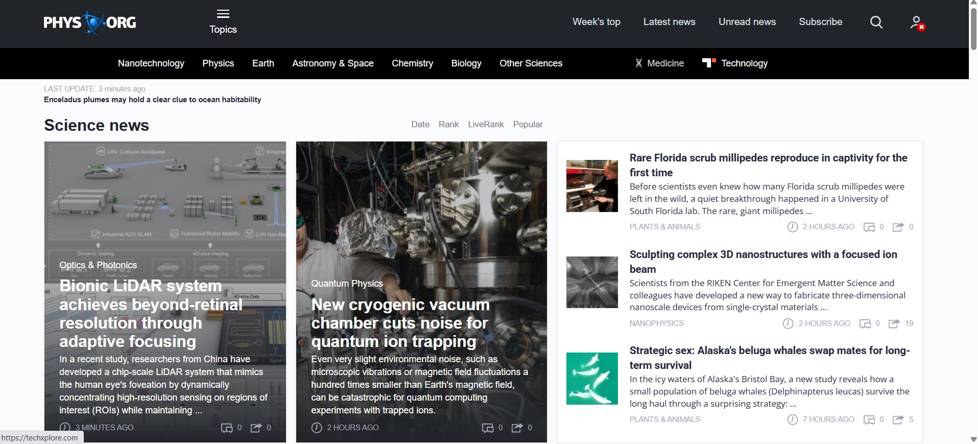 Screenshot from the Phys Org website