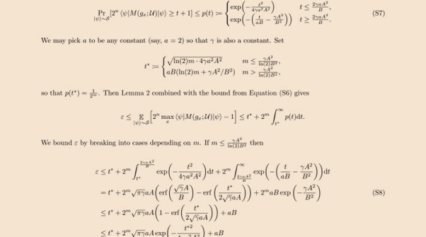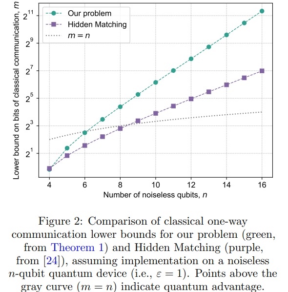 For the cherry on top, the paper said theorem 1 “witnesses a quantum advantage with as few as n = 7 qubits, compared to n = 9 for the best previously-known separation”. That’s fewer than the number of terms in the theorem 1 expression. But don’t worry boys and girls, because complementing theorem 1, a classical protocol would need circa ε2n/ln(2)²n bits, and it’s all explained in the 5-page appendix F. What’s not to like?