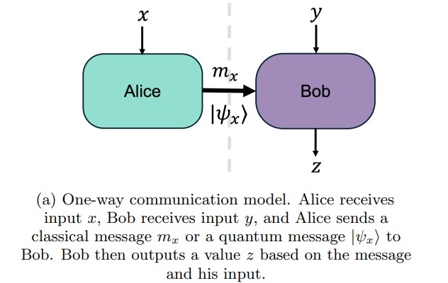 The paper then talked about a “one-way communication task” wherein Alice and Bob “wish to jointly compute a function on their inputs”. Alice receives an input string x whilst Bob receives an input string y. Then Alice sends message mₓ to Bob, who performs a computation to output a correct result f(x, y) = z. The goal is to minimize the length of mₓ. The paper said the challenge “is to identify tasks for which the communication required is significantly smaller than the input size” and “the use of a quantum message |ψₓ⟩ can provably reduce the amount of communication required by an exponential factor”. To paraphrase, Alice could pass her full input string to Bob, but that’s akin to classical computing. The idea is that a shorter message demonstrates a quantum advantage.