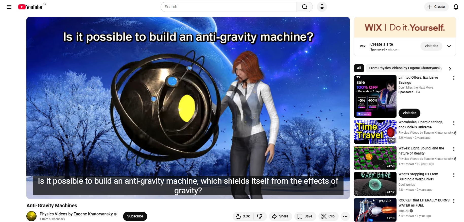 Screenshot from Eugene Khutoryansky’s physics video Anti-Gravity Machines